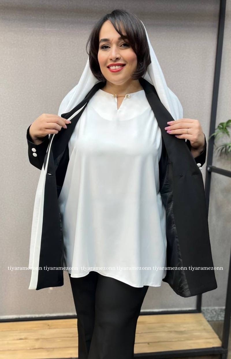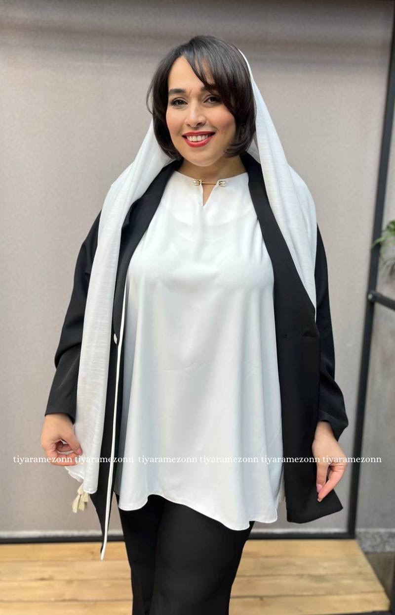 شومیز آستین حلقه ای سایزبزرگ مدل مروارید کد 304