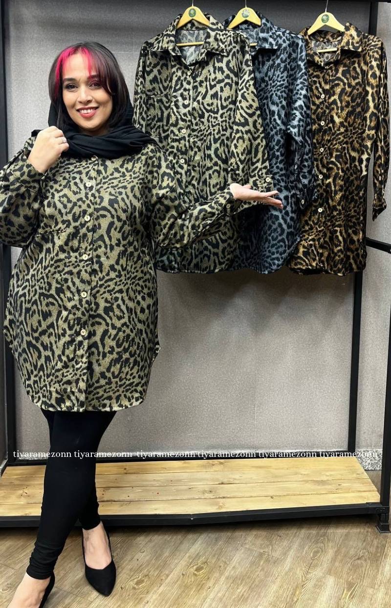 شومیز مانتویی سایزبزرگ مدل پلنگی کد 349