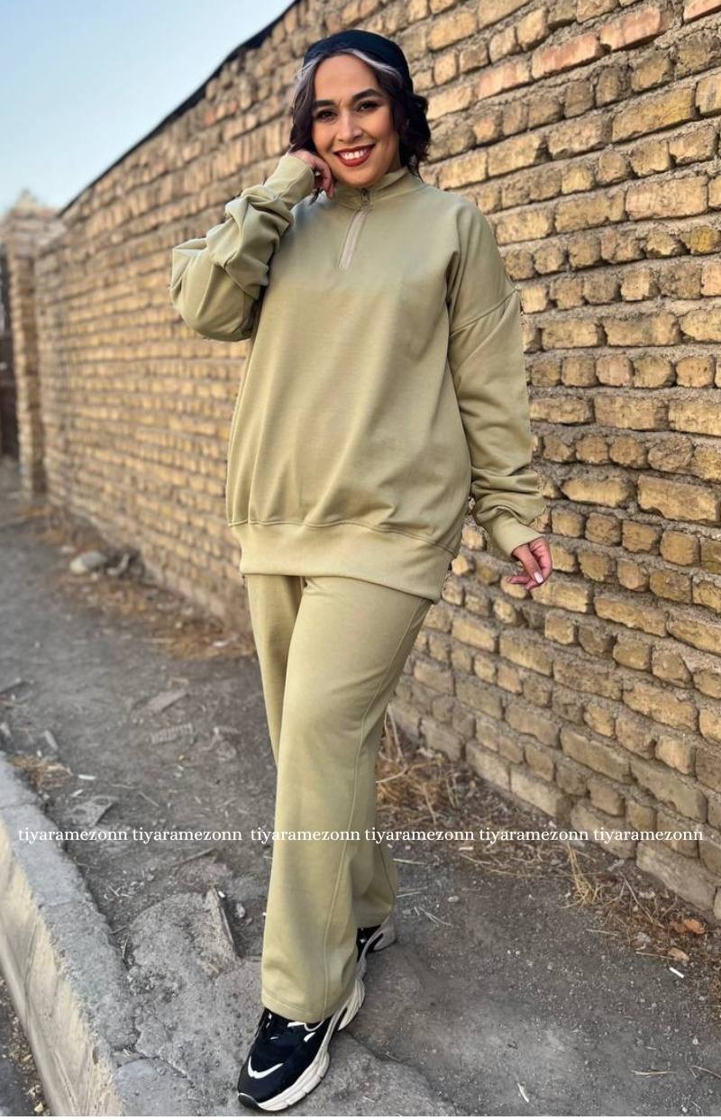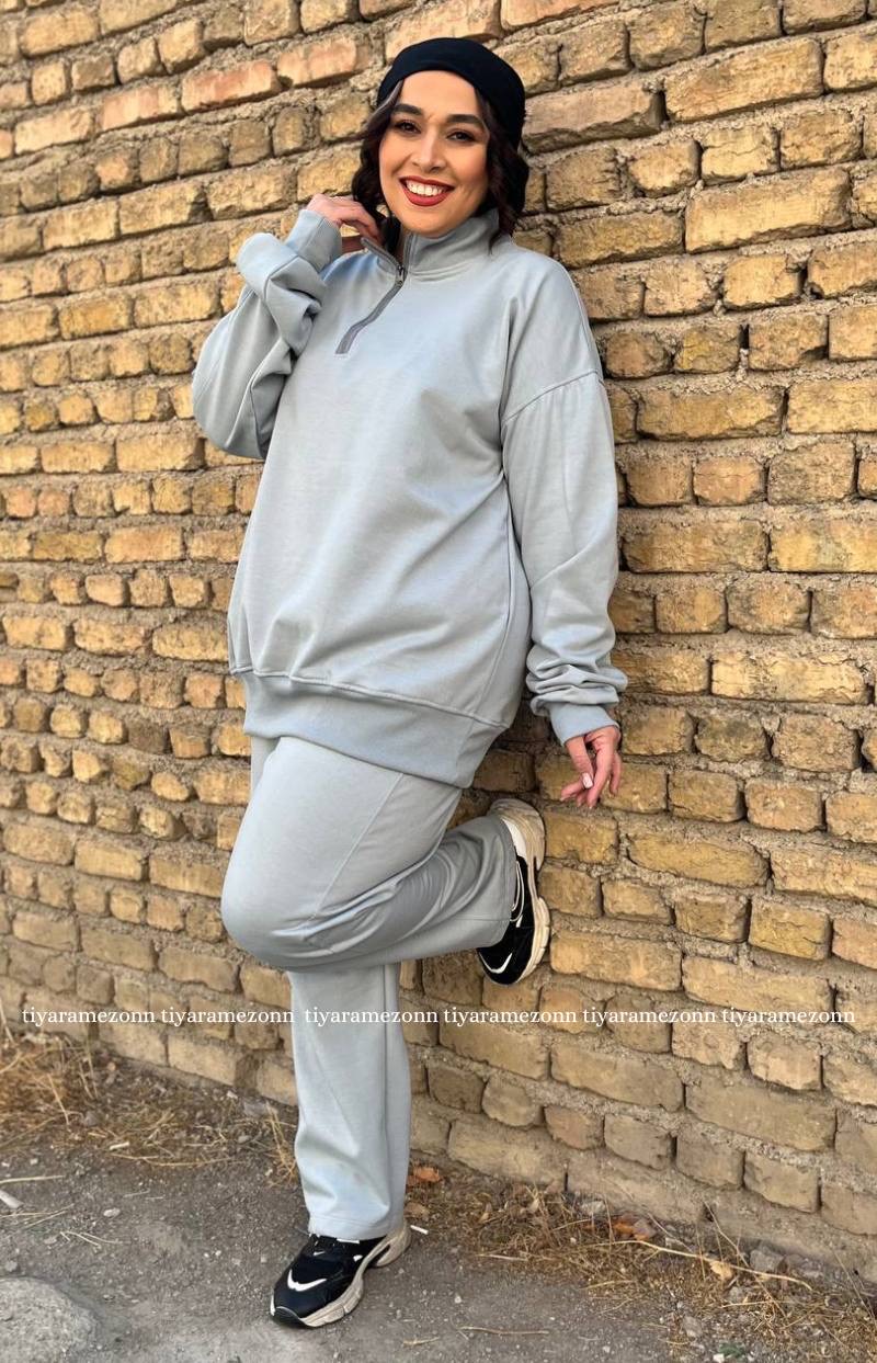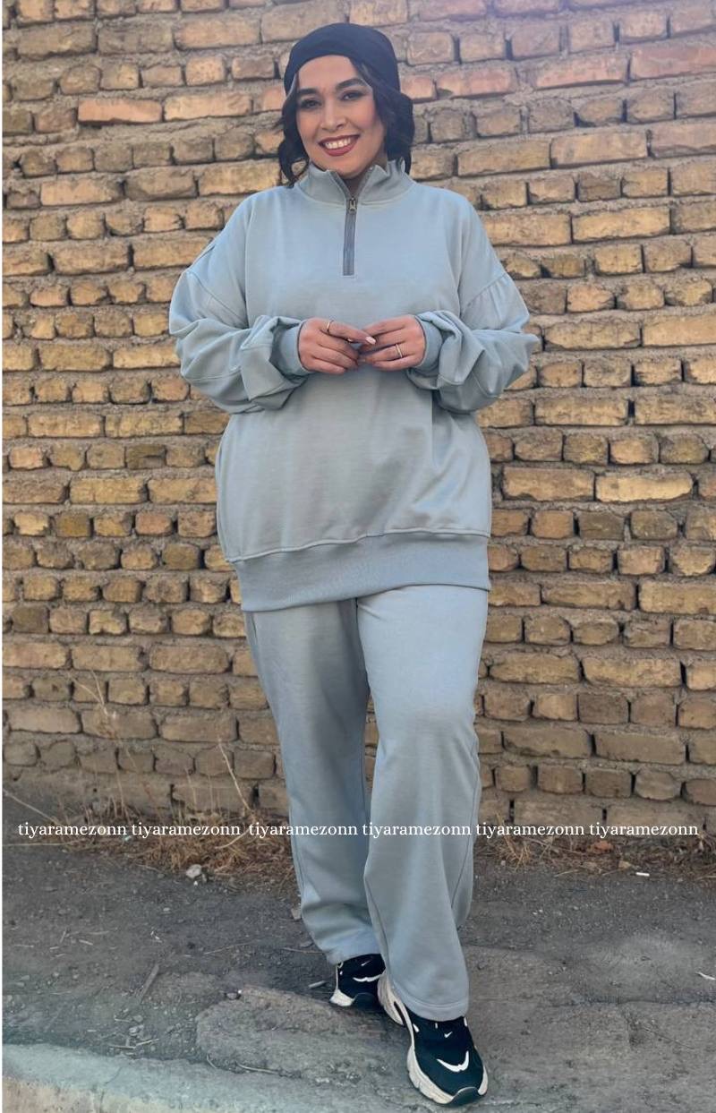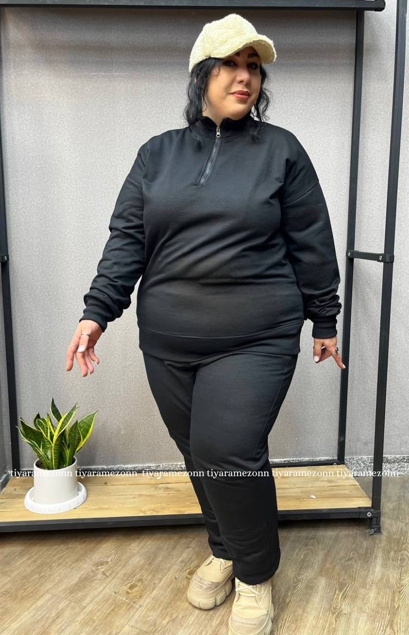 ست هودی و شلوار سایزبزرگ مدل نیم زیپ کد 364