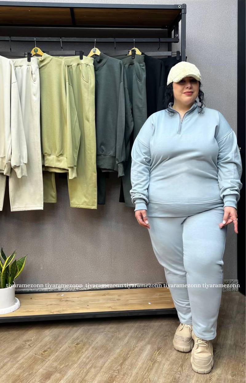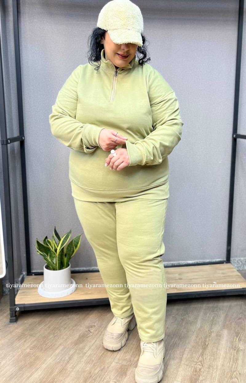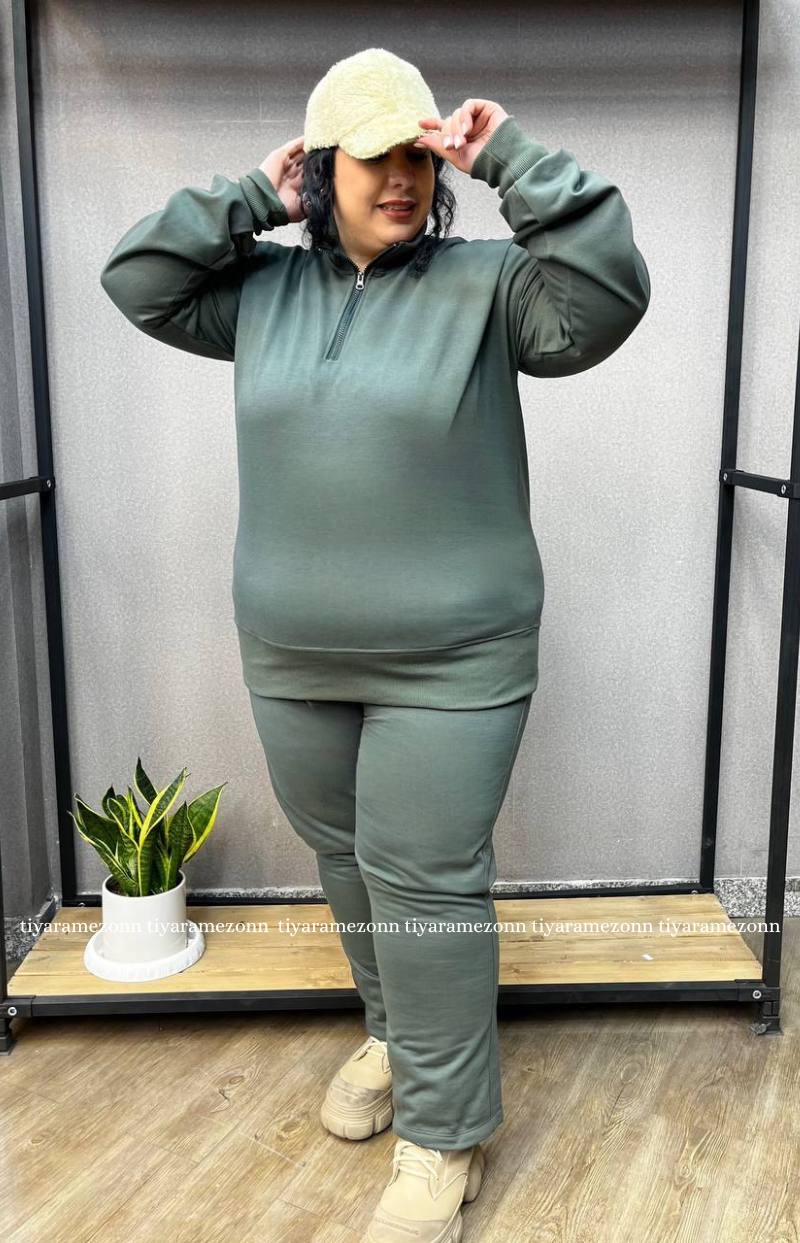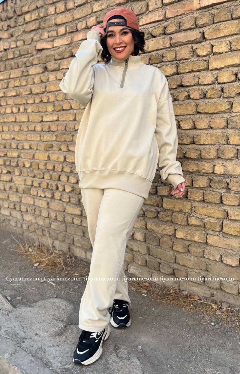 ست هودی و شلوار سایزبزرگ مدل نیم زیپ کد 364