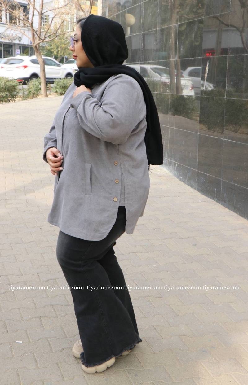 شومیز مانتویی سایزبزرگ مدل بغل دکمه کد 369