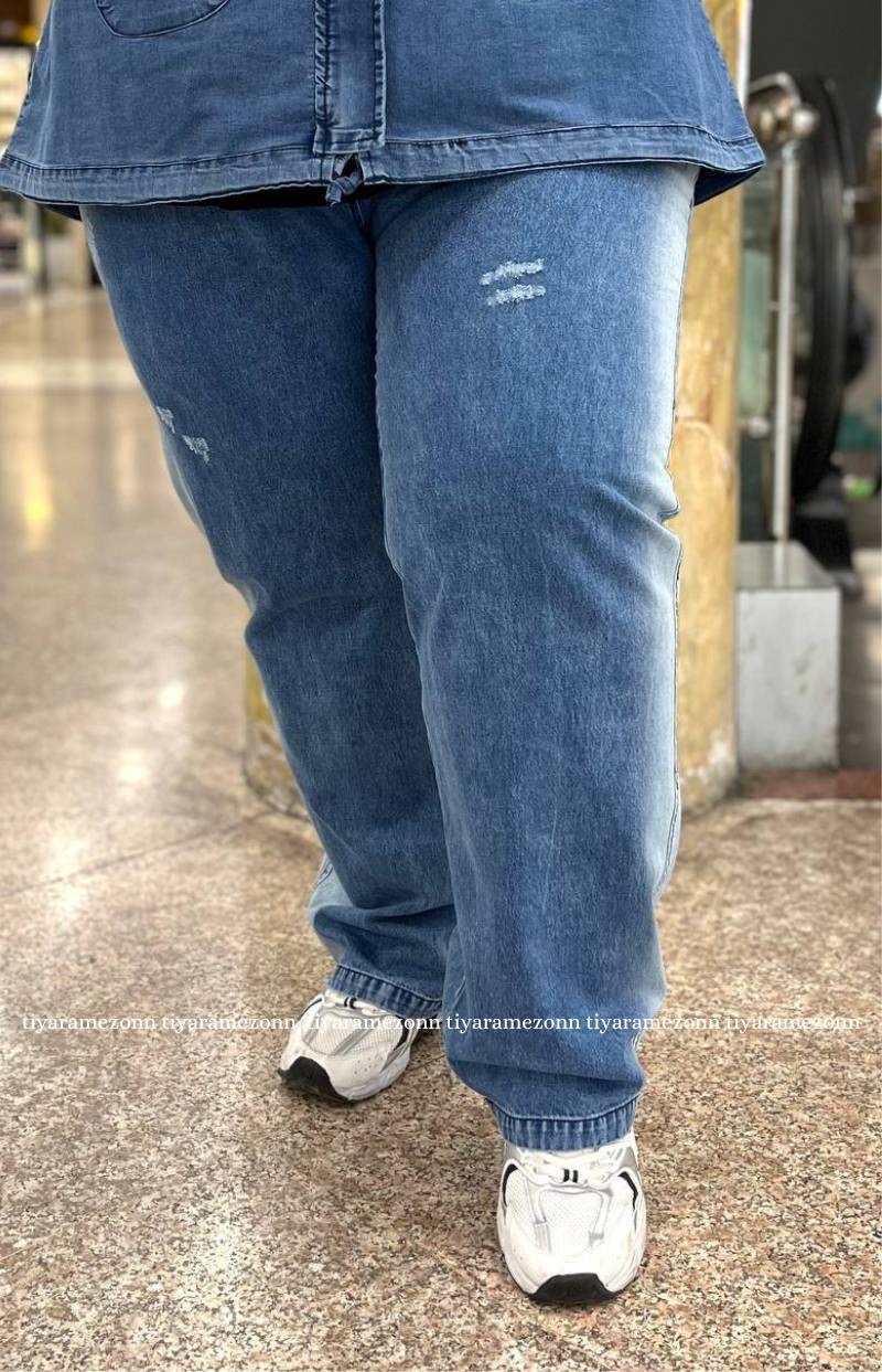 شلواربگ سایزبزرگ جین مدل بند دار کد 400