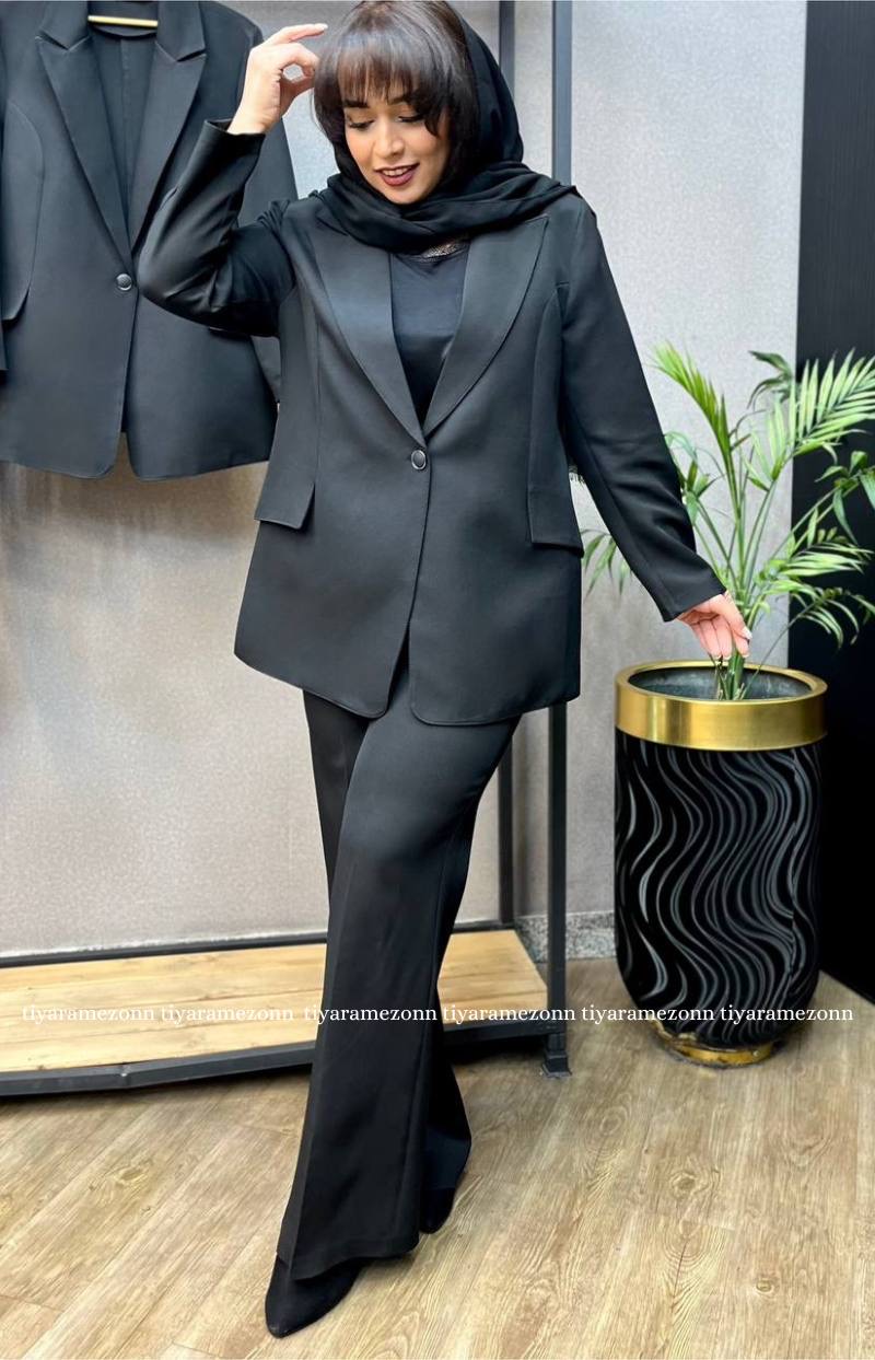 کت و شلوار زنانه سایزبزرگ مشکی کد 404