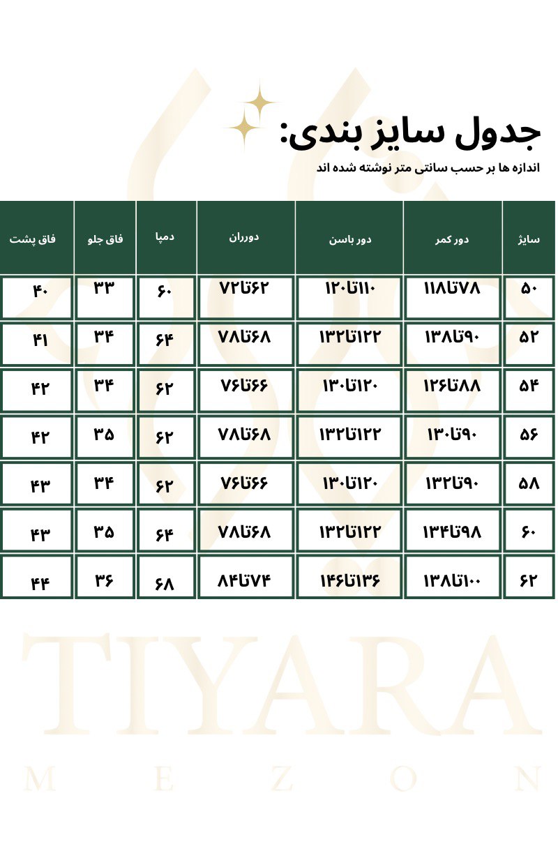 در اندازه ها امکان مغایرت 1 تا 2 سانت با جدول وجود دارد